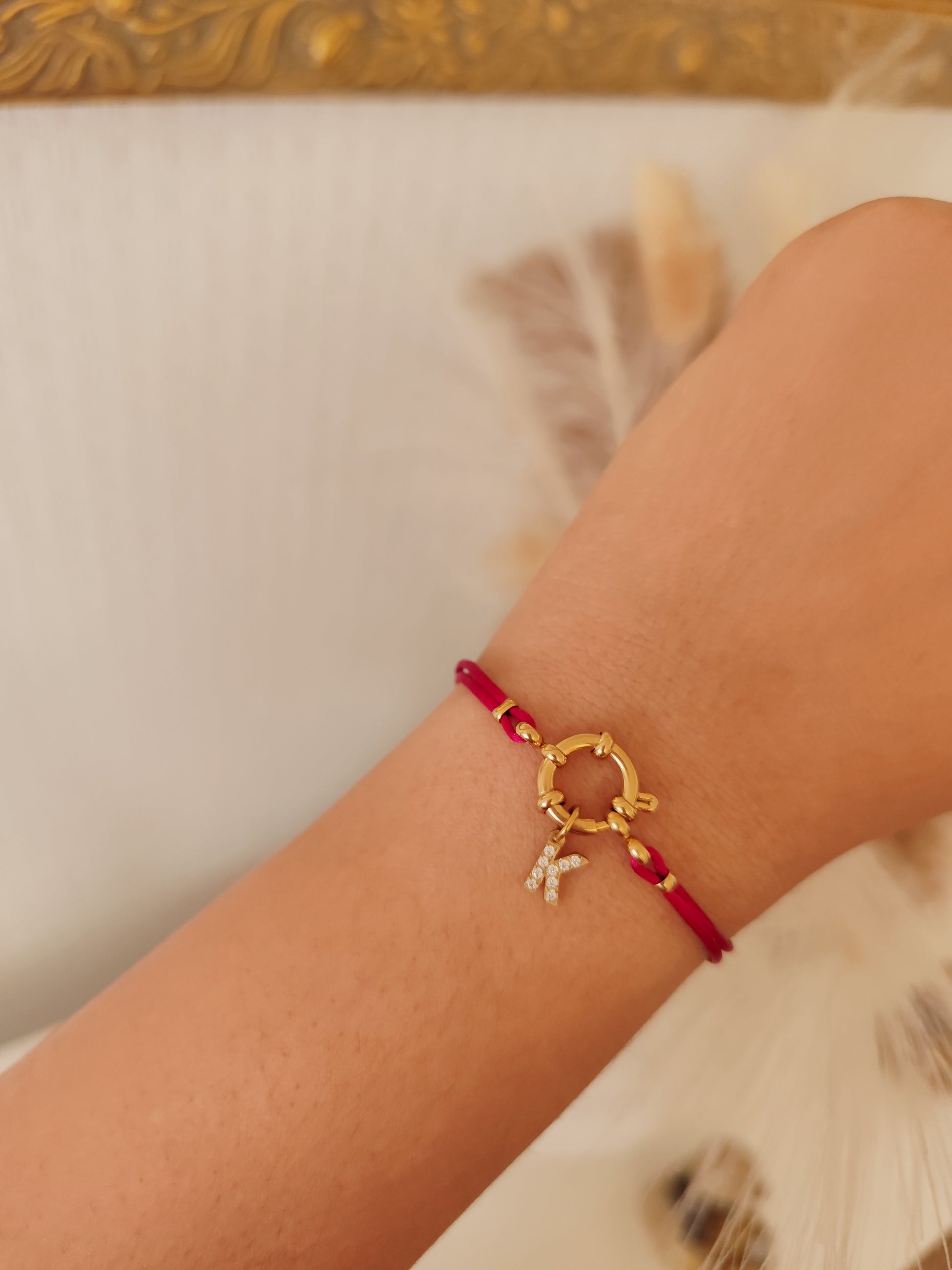 Bracelet fil, à personnaliser avec l'initiale de votre choix, monté sur un fil coloré et sublimé par un fermoir doré, il se porte comme une signature : discrète mais lumineuse.