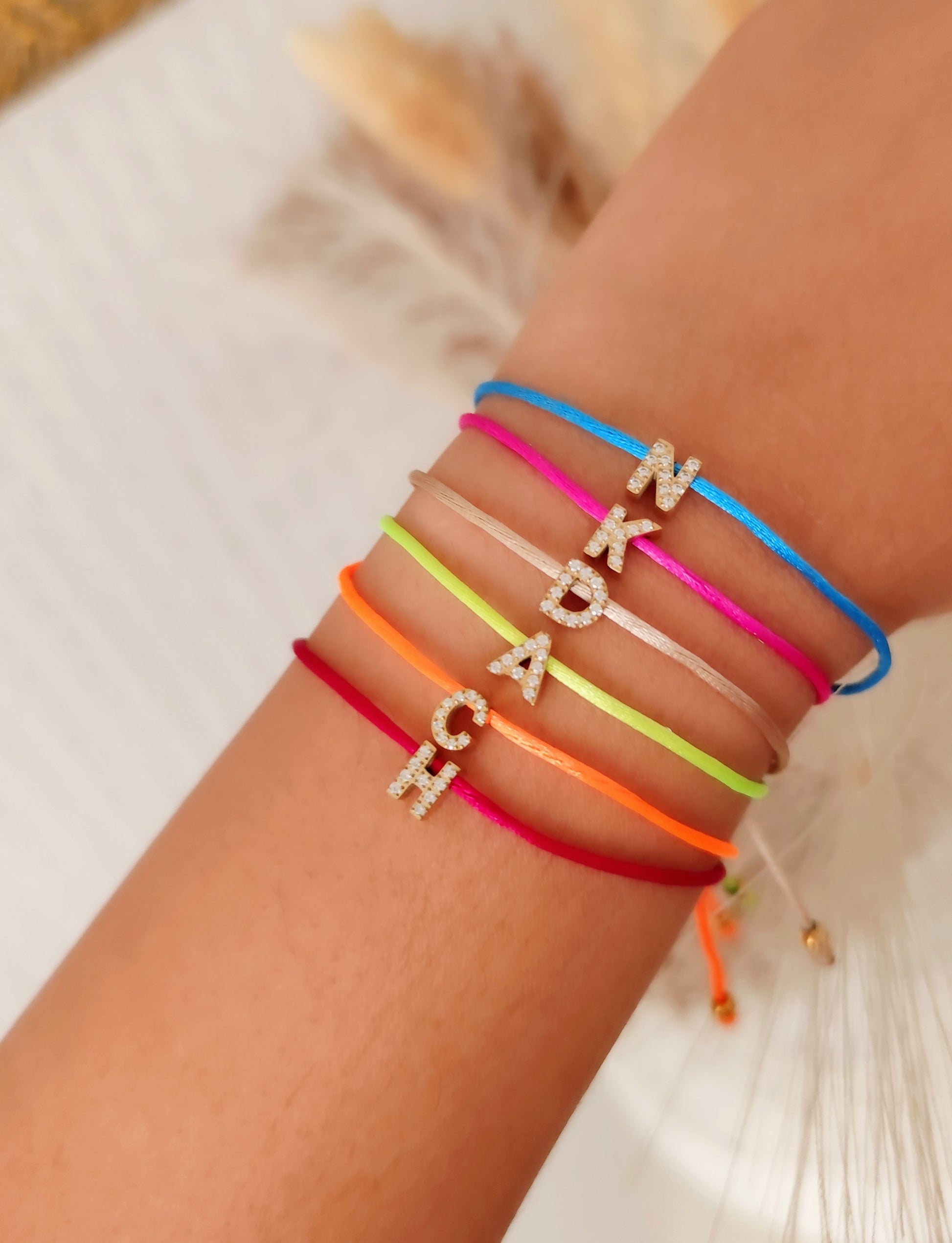 Matière : fil nylon, et lettre strass en acier inoxydable